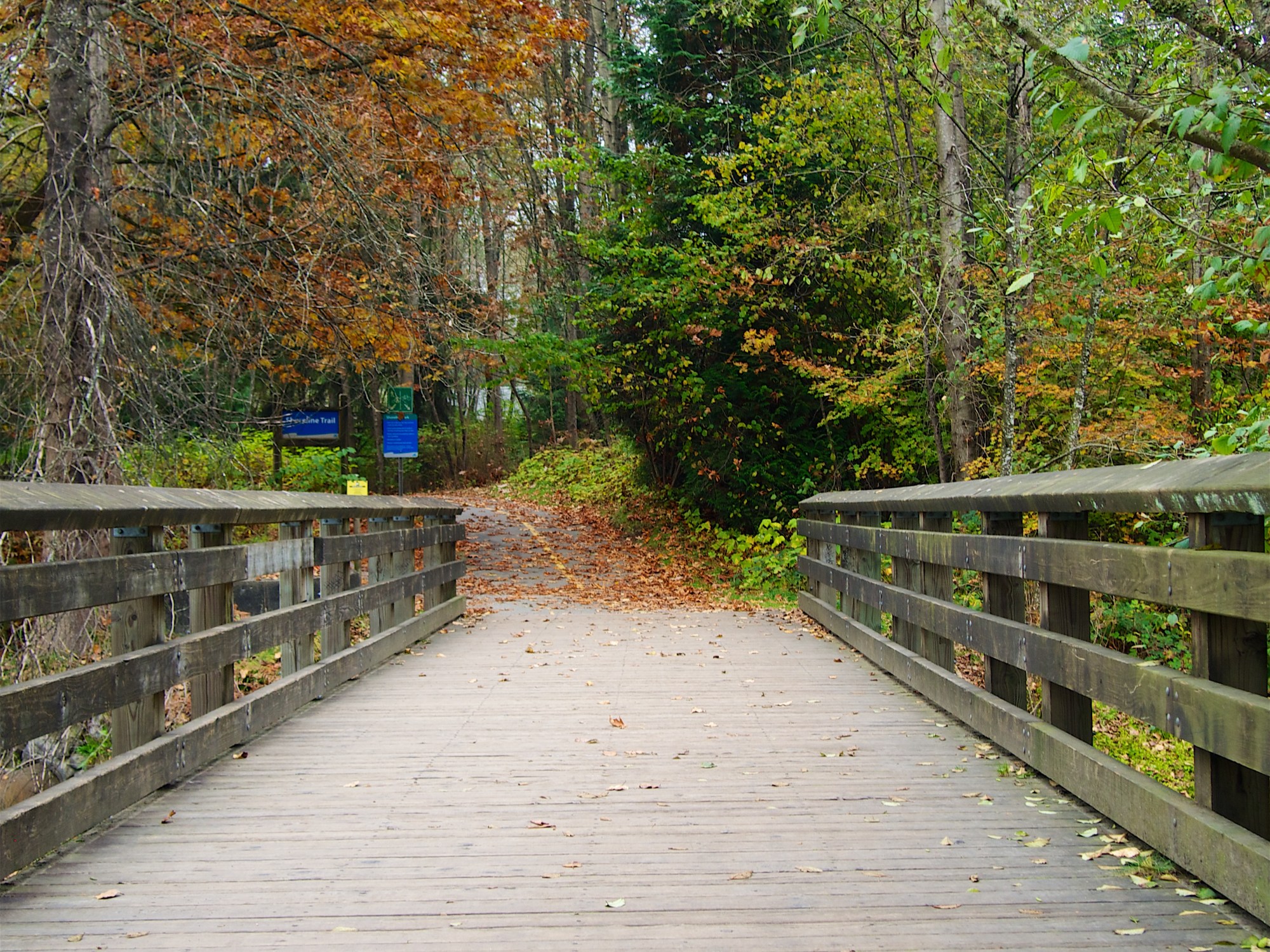 We finally merge with the bike path that we had walked only 2 weeks earlier. The reds and greens from last time have been replaced with oranges and yellows, and the ground is now painted with the colours of fall.