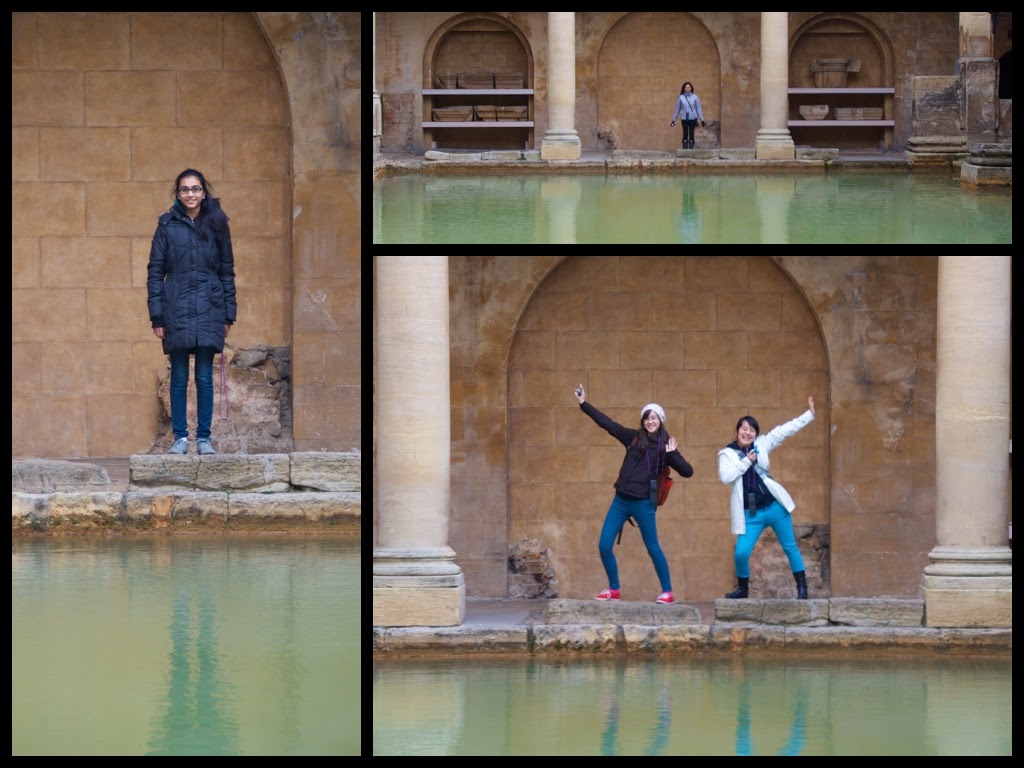 | Harleen (left), Ms. Mulji (top right), and Suesha & Rene (bottom right), in the main pump room of the Roman Baths. |