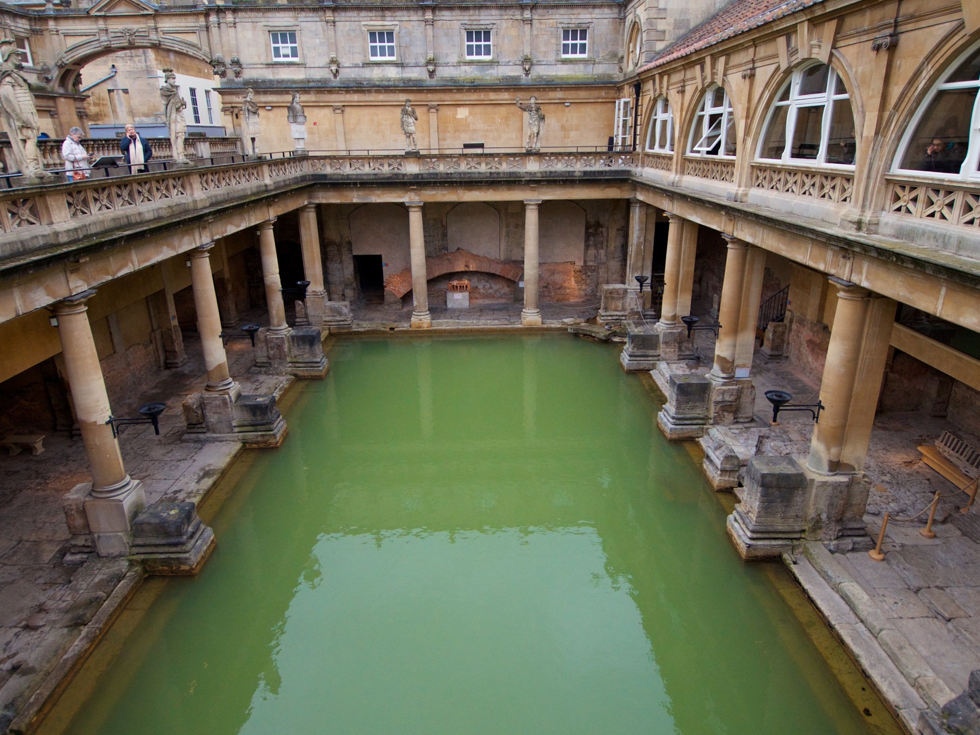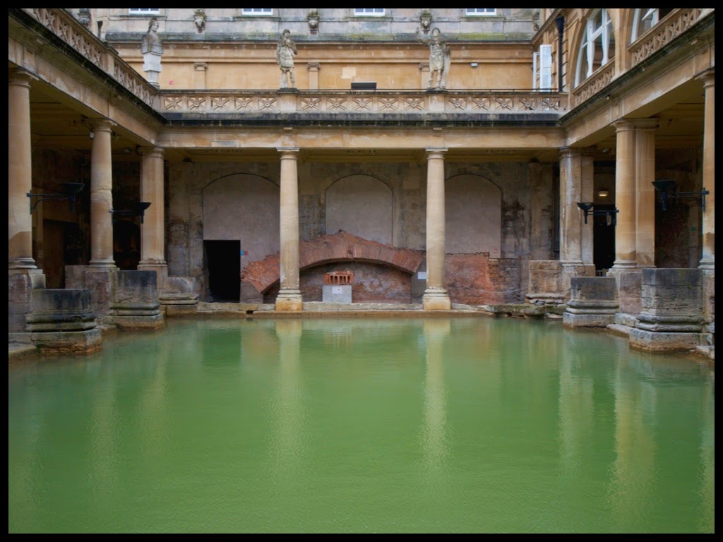 About one hour from the site of Stonehenge lay the historic town of Bath. In this town lay the historic Roman Baths – a structure constructed on a natural hot spring, starting with a temple between 60-70 AD, and the Roman Baths slowly being built up in the 300 years to follow. The original building in the 2nd century was wooden, but fell apart, and was later rebuilt multiple times, the current incarnation being built up in stone in the 1700’s. It consisted of multiple rooms houses cold, warm and hot baths.