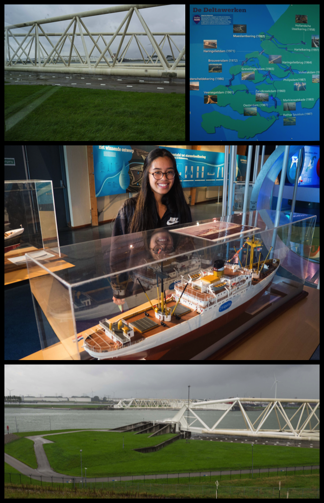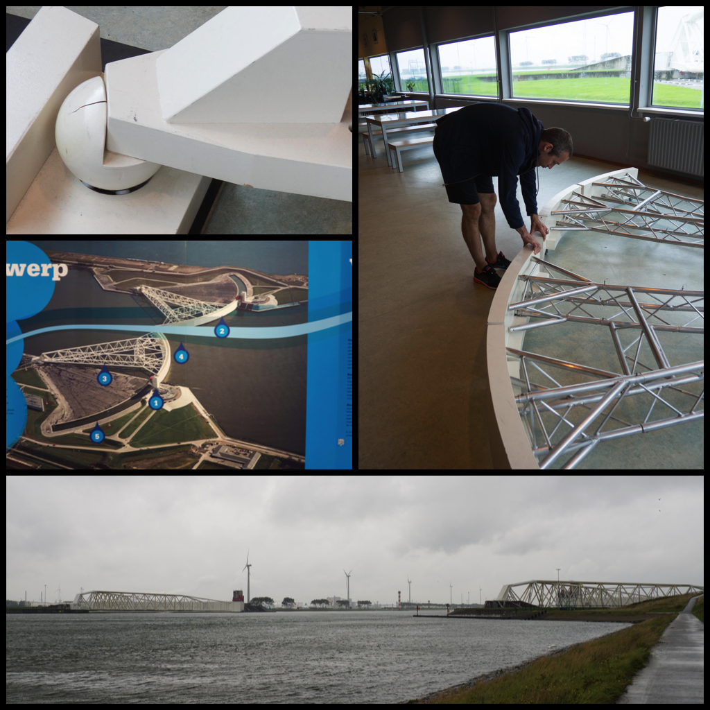 As I mentioned last time, 1/3 of Holland is technically under sea level. As you can imagine, this is a problem for many of the countries inhabitants, and of course the majority of their farm land needed to support them. So in the 1800’s the Dutch started to develop systems to help manage the water. Moving it, and keeping it at bay. Kinderdijk is an example of this – using Windmills to control water levels, and to use it effectively in farming. However, Holland is possesses a lot of the coast line, as it borders the Atlantic Ocean on its west and north sides. Because of this, there is an entire system dedicated to Water Management along the coasts – called the Deltaworks. The project has multiple goals. One is protection. There have been many great floods in Holland due to storms, leading to many deaths and damage to infrastructure. So they have built storm surge barriers to protect the land. We saw one of these barriers – the Maeslant Storm Surge Barrier. It is 2 arms, stored on land, but moved out over the ocean using a ball bearing joint (like a shoulder joint), that then sink to the bottom of the canal and protect the river, and in turn the harbor), preventing flooding and protecting part of Southwest Holland (in the province of Zeeland). Each arm is as wide as the Eiffel tower is high, and they join together with a flexible v-shaped fit in order to ensure that the pressure of the water doesn’t force them to break.